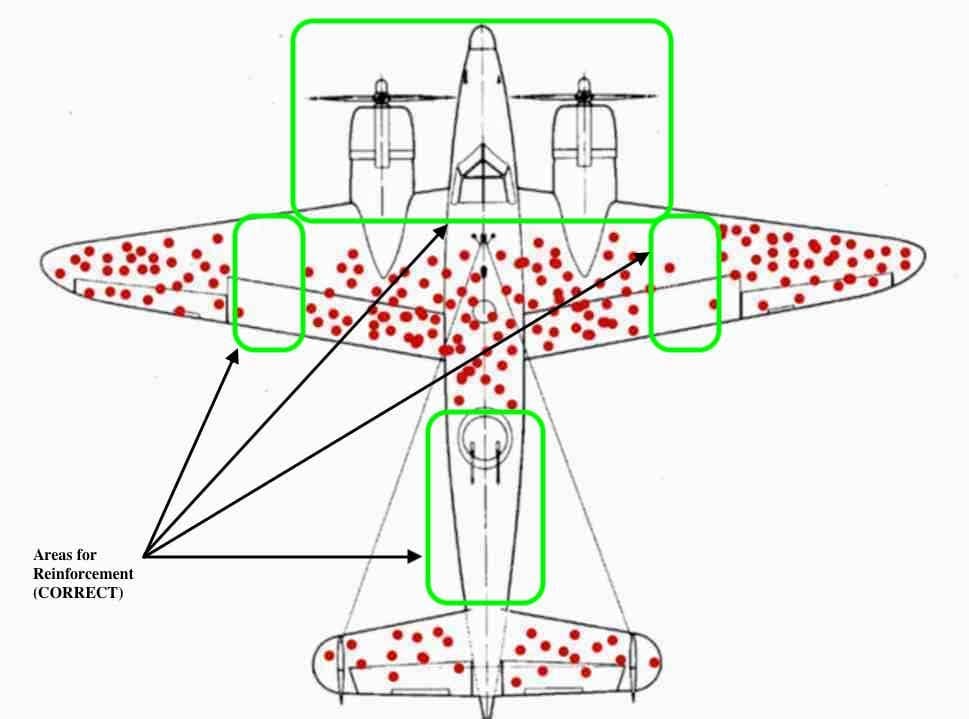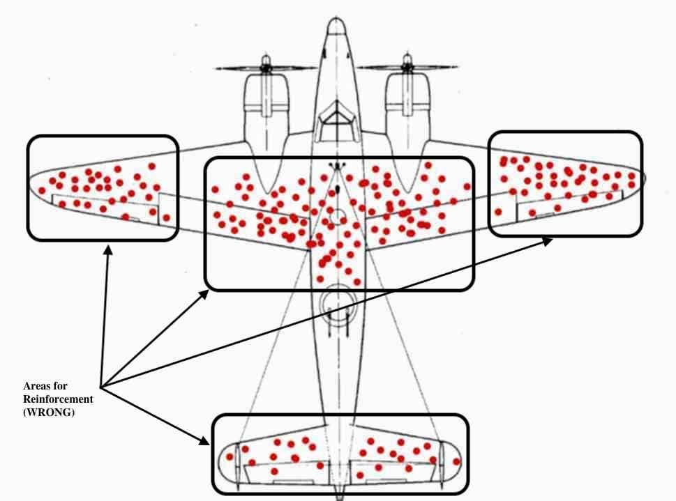 Allied bombers returning from missions over Nazi-occupied Europe arrived back at base riddled with bullet holes. Military engineers studied the damage patterns carefully, noting that hits were heavily concentrated on the wings and fuselage. The natural conclusion seemed obvious: reinforce the areas that were taking the most damage.